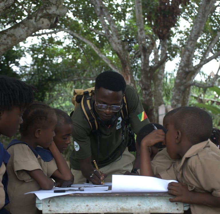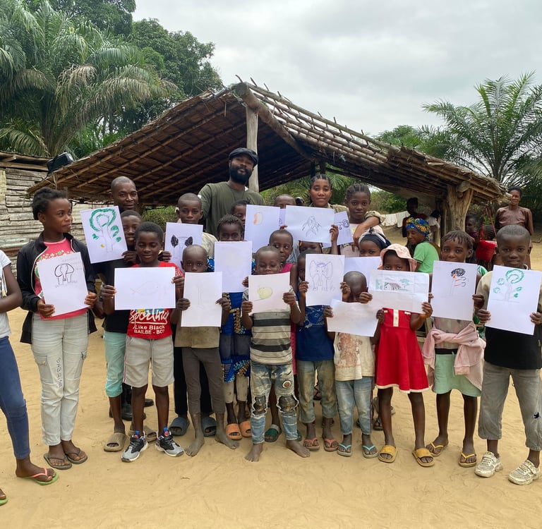 In the villages of Sialivakou, Ngoumbi, Tandou Ngoma, and Mpella, the artists led creative workshops: comic drawing, recycled art, storytelling, field recording, and filmed testimonies. These sessions sparked intergenerational exchanges, blending traditional knowledge with contemporary creation. This inaugural residency has turned the park into a vibrant space for expression, transmission, and collective engagement.