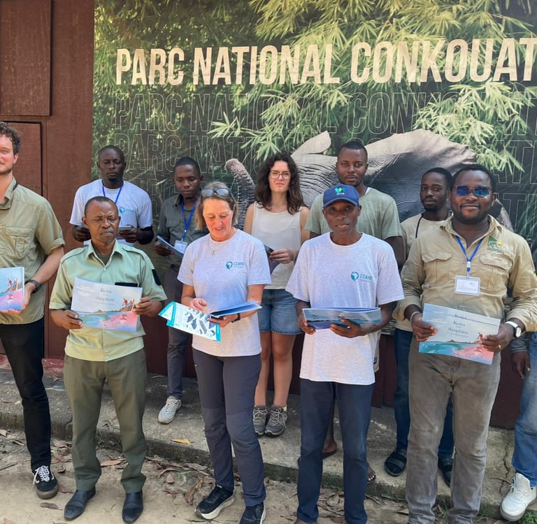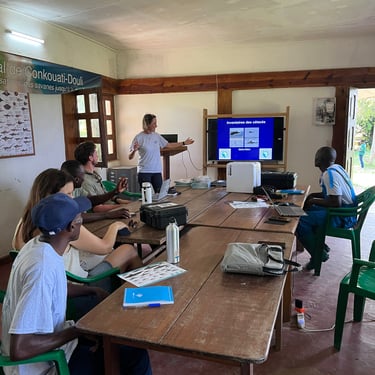 Qu’il s’agisse de la haute mer ou des eaux intérieures, l’équipe de la conservation du Parc National de Conkouati-Douli franchit une nouvelle étape dans la compréhension et la protection des écosystèmes aquatiques. Ce progrès s’articule autour d’une formation de haut niveau sur le suivi des cétacés aux côtés de Dr Gianna Minton, spécialiste des mammifères marins et membre du consortium pour conservation du dauphin à bosse de l'Atlantique, et du lancement d’une étude hydrobiologique des milieux aquatiques avec Hoel Grenier, expert du bureau d'étude Biotope. Cette double approche scientifique marque un tournant dans le renforcement des méthodes de recherche du parc. Il s’agit d’une immersion au cœur d’un travail rigoureux, où chaque donnée collectée devient un levier concret pour préserver la richesse marine et aquatique du territoire.