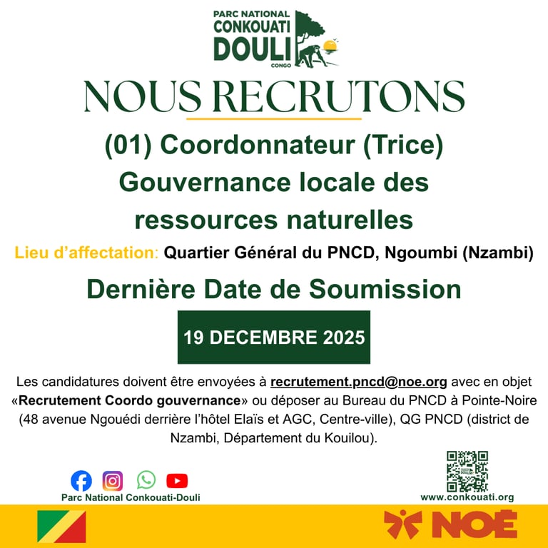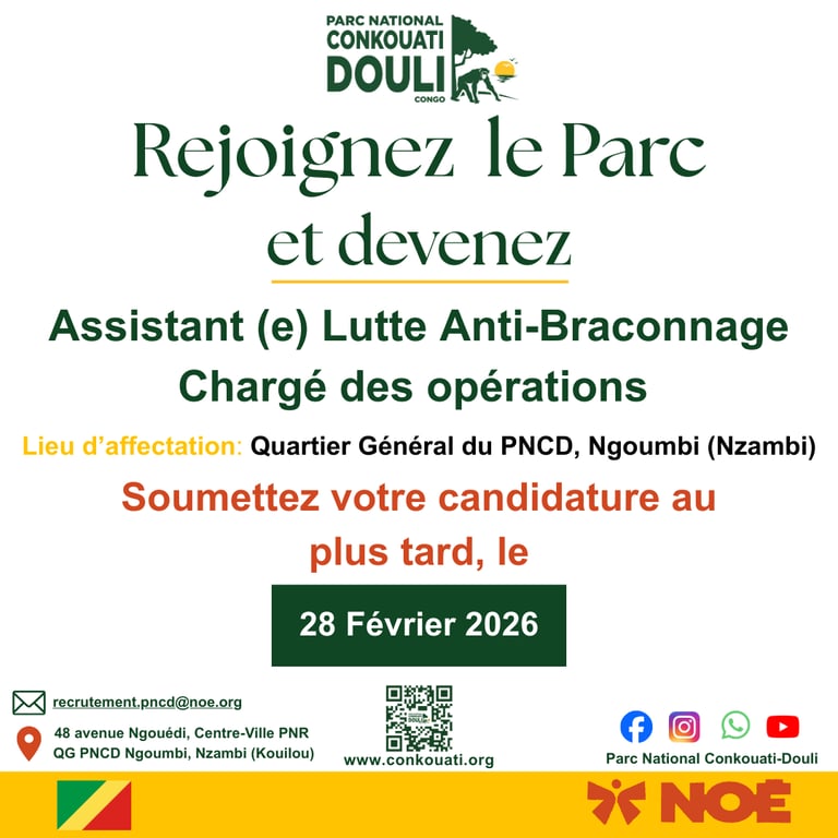 Vous souhaitez rejoindre l’équipe dynamique du Parc National de Conkouati-Douli ?